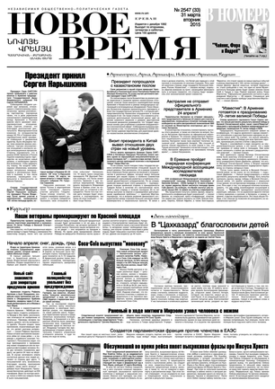 Общественно- политическая газета “Новое Время” была создана в 1992-м году и за 20 лет своего существования сумела заслужить среди армянских читателей право называться лучшей русскоязычной газетой в РА. Помимо сугубо политических тем издание обращается также к вопросам социальным, научным, культурным. Внимание уделяется и проблемам армянской диаспоры…