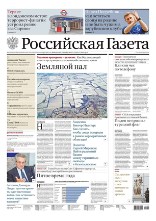 Это объективная, оперативная, качественная информация. Газета исповедует принцип: "Сведения из первых рук". В ней нет места домыслам - это журналистика факта. Подписавшись на "Российскую газету", вы получаете уникальную возможность задать любой волнующий вас вопрос представителям региональной и федеральной власти и получить ответ по существу. После публикации в газете вступают в силу федеральные законы, указы и распоряжения Президента России. Подписавшись на "Российскую газету", вы сможете получить полное представление обо всех важнейших событиях в России и мире, а сверх того много полезной информации, помогающей жить и добиваться успеха.