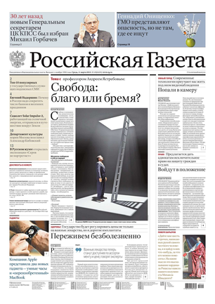 Это объективная, оперативная, качественная информация. Газета исповедует принцип: "Сведения из первых рук". В ней нет места домыслам - это журналистика факта. Подписавшись на "Российскую газету", вы получаете уникальную возможность задать любой волнующий вас вопрос представителям региональной и федеральной власти и получить ответ по существу. После публикации в газете вступают в силу федеральные законы, указы и распоряжения Президента России. Подписавшись на "Российскую газету", вы сможете получить полное представление обо всех важнейших событиях в России и мире, а сверх того много полезной информации, помогающей жить и добиваться успеха.