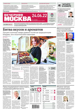 «Вечерняя Москва» — ежедневная российская вечерняя газета, старейшее из вечерних изданий в России, учрежденное в 1923 году. Выходит пять дней в неделю, кроме субботы и воскресенья. Отличается тем, что рассказывает о событиях еще не завершившегося дня. Оперативно освещает хронику и особенности жизни Москвы, охватывает все слои общества и большинство профессиональных и возрастных групп читателей.Издание представлено тремя выпусками – утренним ежедневным, вечерним (выходит три раза в неделю), еженедельным (выходит по четвергам).