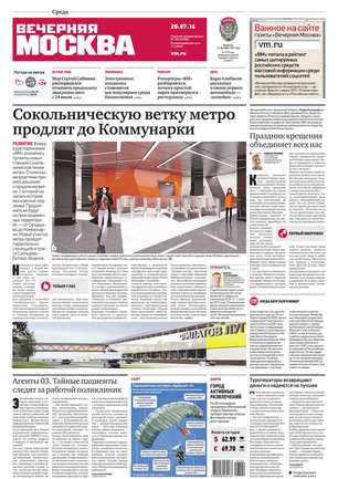 «Вечерняя Москва» — ежедневная российская вечерняя газета, старейшее из вечерних изданий в России, учрежденное в 1923 году. Выходит пять дней в неделю, кроме субботы и воскресенья. Отличается тем, что рассказывает о событиях еще не завершившегося дня. Оперативно освещает хронику и особенности жизни Москвы, охватывает все слои общества и большинство профессиональных и возрастных групп читателей.Издание представлено тремя выпусками – утренним ежедневным, вечерним (выходит три раза в неделю), еженедельным (выходит по четвергам).