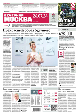 «Вечерняя Москва» — ежедневная российская вечерняя газета, старейшее из вечерних изданий в России, учрежденное в 1923 году. Выходит пять дней в неделю, кроме субботы и воскресенья. Отличается тем, что рассказывает о событиях еще не завершившегося дня. Оперативно освещает хронику и особенности жизни Москвы, охватывает все слои общества и большинство профессиональных и возрастных групп читателей.Издание представлено тремя выпусками – утренним ежедневным, вечерним (выходит три раза в неделю), еженедельным (выходит по четвергам).