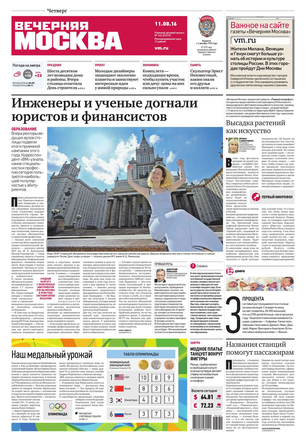 «Вечерняя Москва» — ежедневная российская вечерняя газета, старейшее из вечерних изданий в России, учрежденное в 1923 году. Выходит пять дней в неделю, кроме субботы и воскресенья. Отличается тем, что рассказывает о событиях еще не завершившегося дня. Оперативно освещает хронику и особенности жизни Москвы, охватывает все слои общества и большинство профессиональных и возрастных групп читателей.Издание представлено тремя выпусками – утренним ежедневным, вечерним (выходит три раза в неделю), еженедельным (выходит по четвергам).