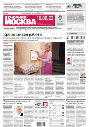 «Вечерняя Москва» — ежедневная российская вечерняя газета, старейшее из вечерних изданий в России, учрежденное в 1923 году. Выходит пять дней в неделю, кроме субботы и воскресенья. Отличается тем, что рассказывает о событиях еще не завершившегося дня. Оперативно освещает хронику и особенности жизни Москвы, охватывает все слои общества и большинство профессиональных и возрастных групп читателей.Издание представлено тремя выпусками – утренним ежедневным, вечерним (выходит три раза в неделю), еженедельным (выходит по четвергам).