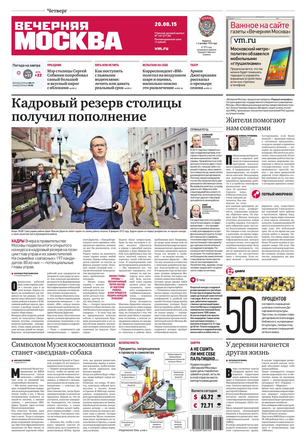 «Вечерняя Москва» — ежедневная российская вечерняя газета, старейшее из вечерних изданий в России, учрежденное в 1923 году. Выходит пять дней в неделю, кроме субботы и воскресенья. Отличается тем, что рассказывает о событиях еще не завершившегося дня. Оперативно освещает хронику и особенности жизни Москвы, охватывает все слои общества и большинство профессиональных и возрастных групп читателей.Издание представлено тремя выпусками – утренним ежедневным, вечерним (выходит три раза в неделю), еженедельным (выходит по четвергам).