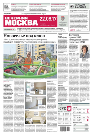 «Вечерняя Москва» — ежедневная российская вечерняя газета, старейшее из вечерних изданий в России, учрежденное в 1923 году. Выходит пять дней в неделю, кроме субботы и воскресенья. Отличается тем, что рассказывает о событиях еще не завершившегося дня. Оперативно освещает хронику и особенности жизни Москвы, охватывает все слои общества и большинство профессиональных и возрастных групп читателей.Издание представлено тремя выпусками – утренним ежедневным, вечерним (выходит три раза в неделю), еженедельным (выходит по четвергам).