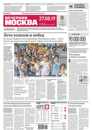 «Вечерняя Москва» — ежедневная российская вечерняя газета, старейшее из вечерних изданий в России, учрежденное в 1923 году. Выходит пять дней в неделю, кроме субботы и воскресенья. Отличается тем, что рассказывает о событиях еще не завершившегося дня. Оперативно освещает хронику и особенности жизни Москвы, охватывает все слои общества и большинство профессиональных и возрастных групп читателей.Издание представлено тремя выпусками – утренним ежедневным, вечерним (выходит три раза в неделю), еженедельным (выходит по четвергам).