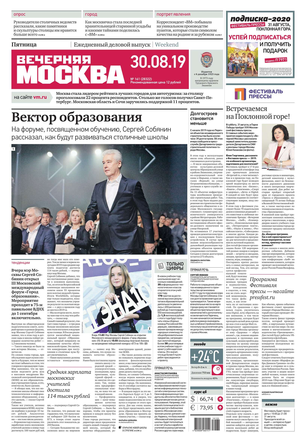 «Вечерняя Москва» — ежедневная российская вечерняя газета, старейшее из вечерних изданий в России, учрежденное в 1923 году. Выходит пять дней в неделю, кроме субботы и воскресенья. Отличается тем, что рассказывает о событиях еще не завершившегося дня. Оперативно освещает хронику и особенности жизни Москвы, охватывает все слои общества и большинство профессиональных и возрастных групп читателей.Издание представлено тремя выпусками – утренним ежедневным, вечерним (выходит три раза в неделю), еженедельным (выходит по четвергам).