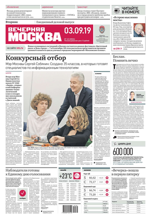«Вечерняя Москва» — ежедневная российская вечерняя газета, старейшее из вечерних изданий в России, учрежденное в 1923 году. Выходит пять дней в неделю, кроме субботы и воскресенья. Отличается тем, что рассказывает о событиях еще не завершившегося дня. Оперативно освещает хронику и особенности жизни Москвы, охватывает все слои общества и большинство профессиональных и возрастных групп читателей.Издание представлено тремя выпусками – утренним ежедневным, вечерним (выходит три раза в неделю), еженедельным (выходит по четвергам).