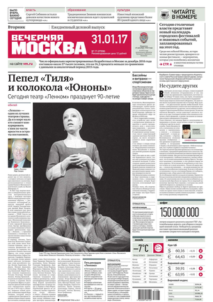 «Вечерняя Москва» — ежедневная российская вечерняя газета, старейшее из вечерних изданий в России, учрежденное в 1923 году. Выходит пять дней в неделю, кроме субботы и воскресенья. Отличается тем, что рассказывает о событиях еще не завершившегося дня. Оперативно освещает хронику и особенности жизни Москвы, охватывает все слои общества и большинство профессиональных и возрастных групп читателей.Издание представлено тремя выпусками – утренним ежедневным, вечерним (выходит три раза в неделю), еженедельным (выходит по четвергам).