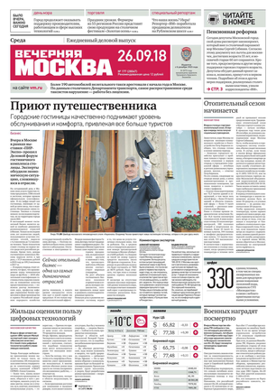 «Вечерняя Москва» — ежедневная российская вечерняя газета, старейшее из вечерних изданий в России, учрежденное в 1923 году. Выходит пять дней в неделю, кроме субботы и воскресенья. Отличается тем, что рассказывает о событиях еще не завершившегося дня. Оперативно освещает хронику и особенности жизни Москвы, охватывает все слои общества и большинство профессиональных и возрастных групп читателей.Издание представлено тремя выпусками – утренним ежедневным, вечерним (выходит три раза в неделю), еженедельным (выходит по четвергам).