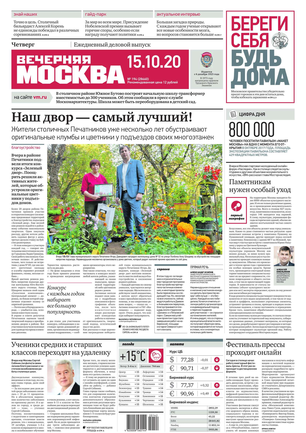 «Вечерняя Москва» — ежедневная российская вечерняя газета, старейшее из вечерних изданий в России, учрежденное в 1923 году. Выходит пять дней в неделю, кроме субботы и воскресенья. Отличается тем, что рассказывает о событиях еще не завершившегося дня. Оперативно освещает хронику и особенности жизни Москвы, охватывает все слои общества и большинство профессиональных и возрастных групп читателей.Издание представлено тремя выпусками – утренним ежедневным, вечерним (выходит три раза в неделю), еженедельным (выходит по четвергам).