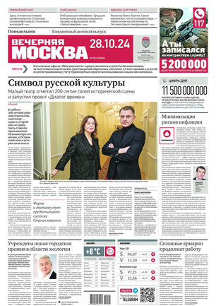 «Вечерняя Москва» — ежедневная российская вечерняя газета, старейшее из вечерних изданий в России, учрежденное в 1923 году. Выходит пять дней в неделю, кроме субботы и воскресенья. Отличается тем, что рассказывает о событиях еще не завершившегося дня. Оперативно освещает хронику и особенности жизни Москвы, охватывает все слои общества и большинство профессиональных и возрастных групп читателей.Издание представлено тремя выпусками – утренним ежедневным, вечерним (выходит три раза в неделю), еженедельным (выходит по четвергам).