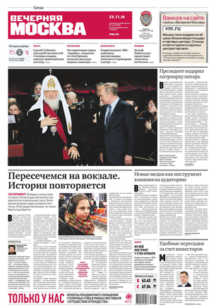 «Вечерняя Москва» — ежедневная российская вечерняя газета, старейшее из вечерних изданий в России, учрежденное в 1923 году. Выходит пять дней в неделю, кроме субботы и воскресенья. Отличается тем, что рассказывает о событиях еще не завершившегося дня. Оперативно освещает хронику и особенности жизни Москвы, охватывает все слои общества и большинство профессиональных и возрастных групп читателей.Издание представлено тремя выпусками – утренним ежедневным, вечерним (выходит три раза в неделю), еженедельным (выходит по четвергам).