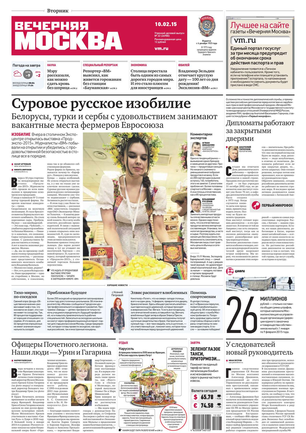 «Вечерняя Москва» — ежедневная российская вечерняя газета, старейшее из вечерних изданий в России, учрежденное в 1923 году. Выходит пять дней в неделю, кроме субботы и воскресенья. Отличается тем, что рассказывает о событиях еще не завершившегося дня. Оперативно освещает хронику и особенности жизни Москвы, охватывает все слои общества и большинство профессиональных и возрастных групп читателей.Издание представлено тремя выпусками – утренним ежедневным, вечерним (выходит три раза в неделю), еженедельным (выходит по четвергам).
