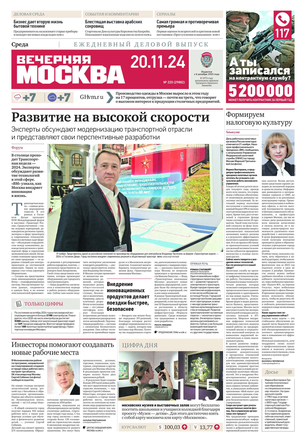 «Вечерняя Москва» — ежедневная российская вечерняя газета, старейшее из вечерних изданий в России, учрежденное в 1923 году. Выходит пять дней в неделю, кроме субботы и воскресенья. Отличается тем, что рассказывает о событиях еще не завершившегося дня. Оперативно освещает хронику и особенности жизни Москвы, охватывает все слои общества и большинство профессиональных и возрастных групп читателей.Издание представлено тремя выпусками – утренним ежедневным, вечерним (выходит три раза в неделю), еженедельным (выходит по четвергам).