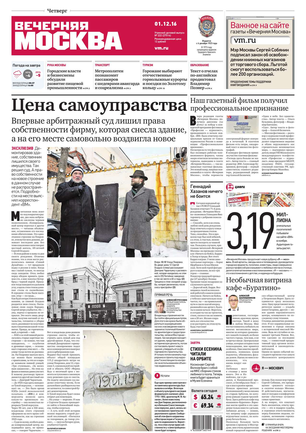 «Вечерняя Москва» — ежедневная российская вечерняя газета, старейшее из вечерних изданий в России, учрежденное в 1923 году. Выходит пять дней в неделю, кроме субботы и воскресенья. Отличается тем, что рассказывает о событиях еще не завершившегося дня. Оперативно освещает хронику и особенности жизни Москвы, охватывает все слои общества и большинство профессиональных и возрастных групп читателей.Издание представлено тремя выпусками – утренним ежедневным, вечерним (выходит три раза в неделю), еженедельным (выходит по четвергам).