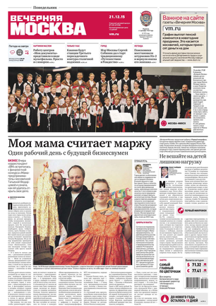 «Вечерняя Москва» — ежедневная российская вечерняя газета, старейшее из вечерних изданий в России, учрежденное в 1923 году. Выходит пять дней в неделю, кроме субботы и воскресенья. Отличается тем, что рассказывает о событиях еще не завершившегося дня. Оперативно освещает хронику и особенности жизни Москвы, охватывает все слои общества и большинство профессиональных и возрастных групп читателей.Издание представлено тремя выпусками – утренним ежедневным, вечерним (выходит три раза в неделю), еженедельным (выходит по четвергам).