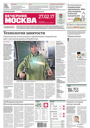 «Вечерняя Москва» — ежедневная российская вечерняя газета, старейшее из вечерних изданий в России, учрежденное в 1923 году. Выходит пять дней в неделю, кроме субботы и воскресенья. Отличается тем, что рассказывает о событиях еще не завершившегося дня. Оперативно освещает хронику и особенности жизни Москвы, охватывает все слои общества и большинство профессиональных и возрастных групп читателей.Издание представлено тремя выпусками – утренним ежедневным, вечерним (выходит три раза в неделю), еженедельным (выходит по четвергам).