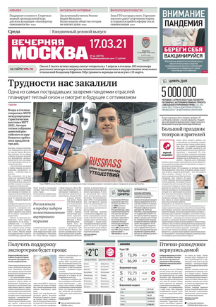 «Вечерняя Москва» — ежедневная российская вечерняя газета, старейшее из вечерних изданий в России, учрежденное в 1923 году. Выходит пять дней в неделю, кроме субботы и воскресенья. Отличается тем, что рассказывает о событиях еще не завершившегося дня. Оперативно освещает хронику и особенности жизни Москвы, охватывает все слои общества и большинство профессиональных и возрастных групп читателей.Издание представлено тремя выпусками – утренним ежедневным, вечерним (выходит три раза в неделю), еженедельным (выходит по четвергам).