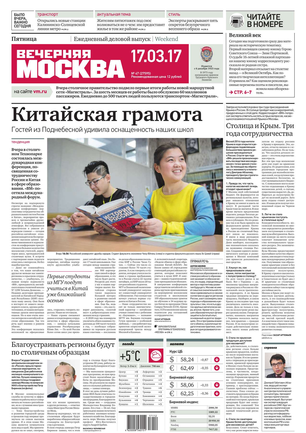 «Вечерняя Москва» — ежедневная российская вечерняя газета, старейшее из вечерних изданий в России, учрежденное в 1923 году. Выходит пять дней в неделю, кроме субботы и воскресенья. Отличается тем, что рассказывает о событиях еще не завершившегося дня. Оперативно освещает хронику и особенности жизни Москвы, охватывает все слои общества и большинство профессиональных и возрастных групп читателей.Издание представлено тремя выпусками – утренним ежедневным, вечерним (выходит три раза в неделю), еженедельным (выходит по четвергам).