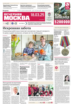«Вечерняя Москва» — ежедневная российская вечерняя газета, старейшее из вечерних изданий в России, учрежденное в 1923 году. Выходит пять дней в неделю, кроме субботы и воскресенья. Отличается тем, что рассказывает о событиях еще не завершившегося дня. Оперативно освещает хронику и особенности жизни Москвы, охватывает все слои общества и большинство профессиональных и возрастных групп читателей.Издание представлено тремя выпусками – утренним ежедневным, вечерним (выходит три раза в неделю), еженедельным (выходит по четвергам).