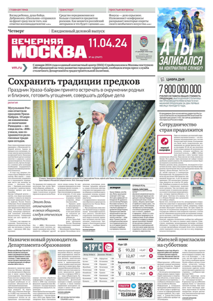 «Вечерняя Москва» — ежедневная российская вечерняя газета, старейшее из вечерних изданий в России, учрежденное в 1923 году. Выходит пять дней в неделю, кроме субботы и воскресенья. Отличается тем, что рассказывает о событиях еще не завершившегося дня. Оперативно освещает хронику и особенности жизни Москвы, охватывает все слои общества и большинство профессиональных и возрастных групп читателей.Издание представлено тремя выпусками – утренним ежедневным, вечерним (выходит три раза в неделю), еженедельным (выходит по четвергам).