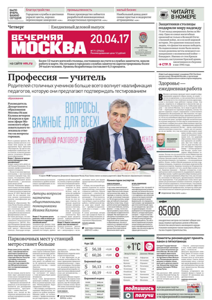 «Вечерняя Москва» — ежедневная российская вечерняя газета, старейшее из вечерних изданий в России, учрежденное в 1923 году. Выходит пять дней в неделю, кроме субботы и воскресенья. Отличается тем, что рассказывает о событиях еще не завершившегося дня. Оперативно освещает хронику и особенности жизни Москвы, охватывает все слои общества и большинство профессиональных и возрастных групп читателей.Издание представлено тремя выпусками – утренним ежедневным, вечерним (выходит три раза в неделю), еженедельным (выходит по четвергам).