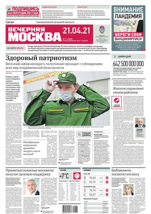 «Вечерняя Москва» — ежедневная российская вечерняя газета, старейшее из вечерних изданий в России, учрежденное в 1923 году. Выходит пять дней в неделю, кроме субботы и воскресенья. Отличается тем, что рассказывает о событиях еще не завершившегося дня. Оперативно освещает хронику и особенности жизни Москвы, охватывает все слои общества и большинство профессиональных и возрастных групп читателей.Издание представлено тремя выпусками – утренним ежедневным, вечерним (выходит три раза в неделю), еженедельным (выходит по четвергам).