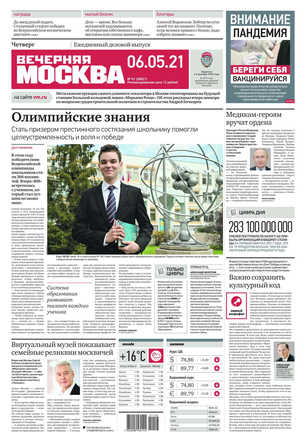 «Вечерняя Москва» — ежедневная российская вечерняя газета, старейшее из вечерних изданий в России, учрежденное в 1923 году. Выходит пять дней в неделю, кроме субботы и воскресенья. Отличается тем, что рассказывает о событиях еще не завершившегося дня. Оперативно освещает хронику и особенности жизни Москвы, охватывает все слои общества и большинство профессиональных и возрастных групп читателей.Издание представлено тремя выпусками – утренним ежедневным, вечерним (выходит три раза в неделю), еженедельным (выходит по четвергам).