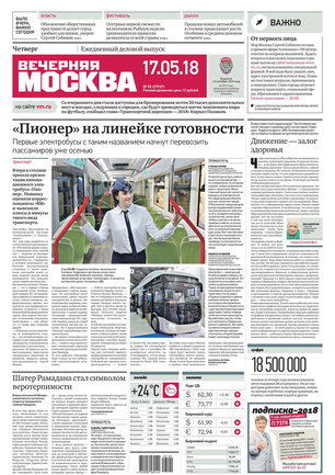 «Вечерняя Москва» — ежедневная российская вечерняя газета, старейшее из вечерних изданий в России, учрежденное в 1923 году. Выходит пять дней в неделю, кроме субботы и воскресенья. Отличается тем, что рассказывает о событиях еще не завершившегося дня. Оперативно освещает хронику и особенности жизни Москвы, охватывает все слои общества и большинство профессиональных и возрастных групп читателей.Издание представлено тремя выпусками – утренним ежедневным, вечерним (выходит три раза в неделю), еженедельным (выходит по четвергам).