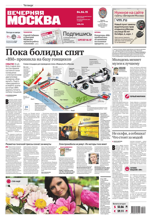 «Вечерняя Москва» — ежедневная российская вечерняя газета, старейшее из вечерних изданий в России, учрежденное в 1923 году. Выходит пять дней в неделю, кроме субботы и воскресенья. Отличается тем, что рассказывает о событиях еще не завершившегося дня. Оперативно освещает хронику и особенности жизни Москвы, охватывает все слои общества и большинство профессиональных и возрастных групп читателей.Издание представлено тремя выпусками – утренним ежедневным, вечерним (выходит три раза в неделю), еженедельным (выходит по четвергам).