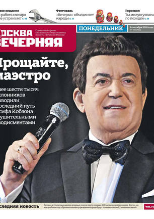 «Вечерняя Москва» — ежедневная российская вечерняя газета, старейшее из вечерних изданий в России, учрежденное в 1923 году. Выходит пять дней в неделю, кроме субботы и воскресенья. Отличается тем, что рассказывает о событиях еще не завершившегося дня. Оперативно освещает хронику и особенности жизни Москвы, охватывает все слои общества и большинство профессиональных и возрастных групп читателей.Издание представлено тремя выпусками – утренним ежедневным, вечерним (выходит три раза в неделю), еженедельным (выходит по четвергам).