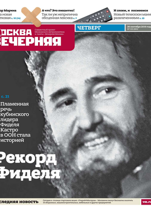 «Вечерняя Москва» — ежедневная российская вечерняя газета, старейшее из вечерних изданий в России, учрежденное в 1923 году. Выходит пять дней в неделю, кроме субботы и воскресенья. Отличается тем, что рассказывает о событиях еще не завершившегося дня. Оперативно освещает хронику и особенности жизни Москвы, охватывает все слои общества и большинство профессиональных и возрастных групп читателей.Издание представлено тремя выпусками – утренним ежедневным, вечерним (выходит три раза в неделю), еженедельным (выходит по четвергам).