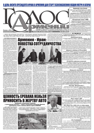 Общественно-политическое издание "Голос Армении" выходит с мая 1991 года и является наиболее популярной, авторитетной и цитируемой русскоязычной газетой страны. Спектр затрагиваемых проблем - самый широкий: от политики и экономики до культуры и социальных сетей, а авторы "Голоса Армении" по праву составляют золотой фонд современной армянской журналистики.