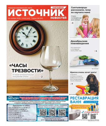 Еженедельная газета «Источник новостей» – одно из самых популярных изданий в Республике Коми. Основные темы: информация о событиях в регионе, политика, культура, социальные проблемы и многое другое. Еженедельник рассчитан на широкий круг читателей.