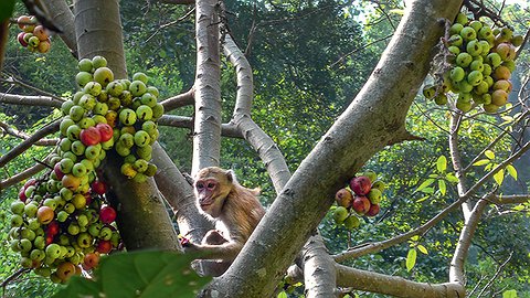 Много разных растений на свете. И плоды у них всех возможных форм, размеров и расцветок. Но, оказывается, и «прописка» бывает разная. Одни фрукты, как положено, висят на ветвях, а другие забрались на стволы. Интересно, зачем?