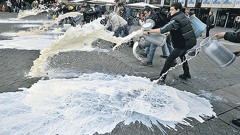 В России такого еще не бывало! На загнивающем Западе - сколько хочешь. Но чтобы у нас фермеры сливали молоко в канаву и грозили зарезать своих же коров?! Это как же надо было их довести.